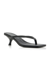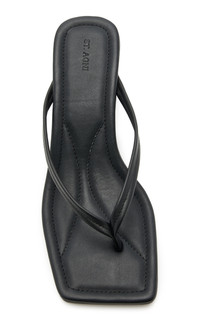 PRODUCT DETAILS - Heeled sandals silhouette, leather body, thong-detail, square toe, unlined - Slip on - Composition: upper: 100% lambskin leather, insole: 100% calfskin leather, outsole: 100% bovine leather - Imported