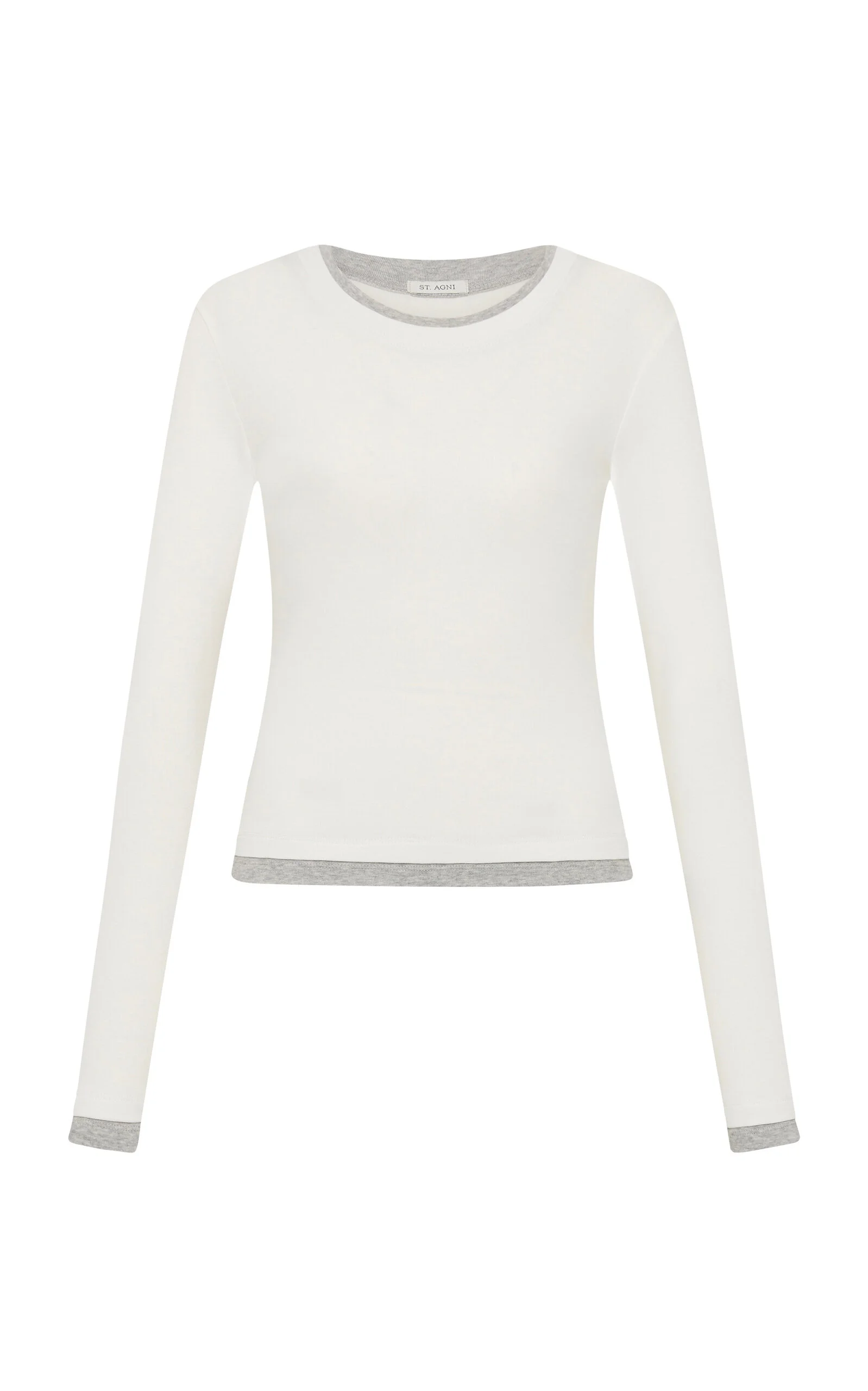 Long sleeve, crew neckline, double layered bind at neckline, cuff and hem PRODUCT DETAILS - Spring '26 - Slim fit, long sleeves, crew neck, double layered bind at neckline, cuff and hem - Unlined - Composition: 100% Organic Cotton - Slips on - *Wash and dry garment inside out, cold hand wash separately in mild detergent, cool iron, do not soak, bleach, twist, tumble dry, store flat or dry clean - Made in China