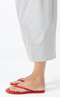 PRODUCT DETAILS - Flat sandals silhouette, leather body, thong-detail, round toe, unlined - Slip on - Composition: upper: 100% lambskin leather, insole: 100% calfskin leather, outsole: 100% rubber - Imported