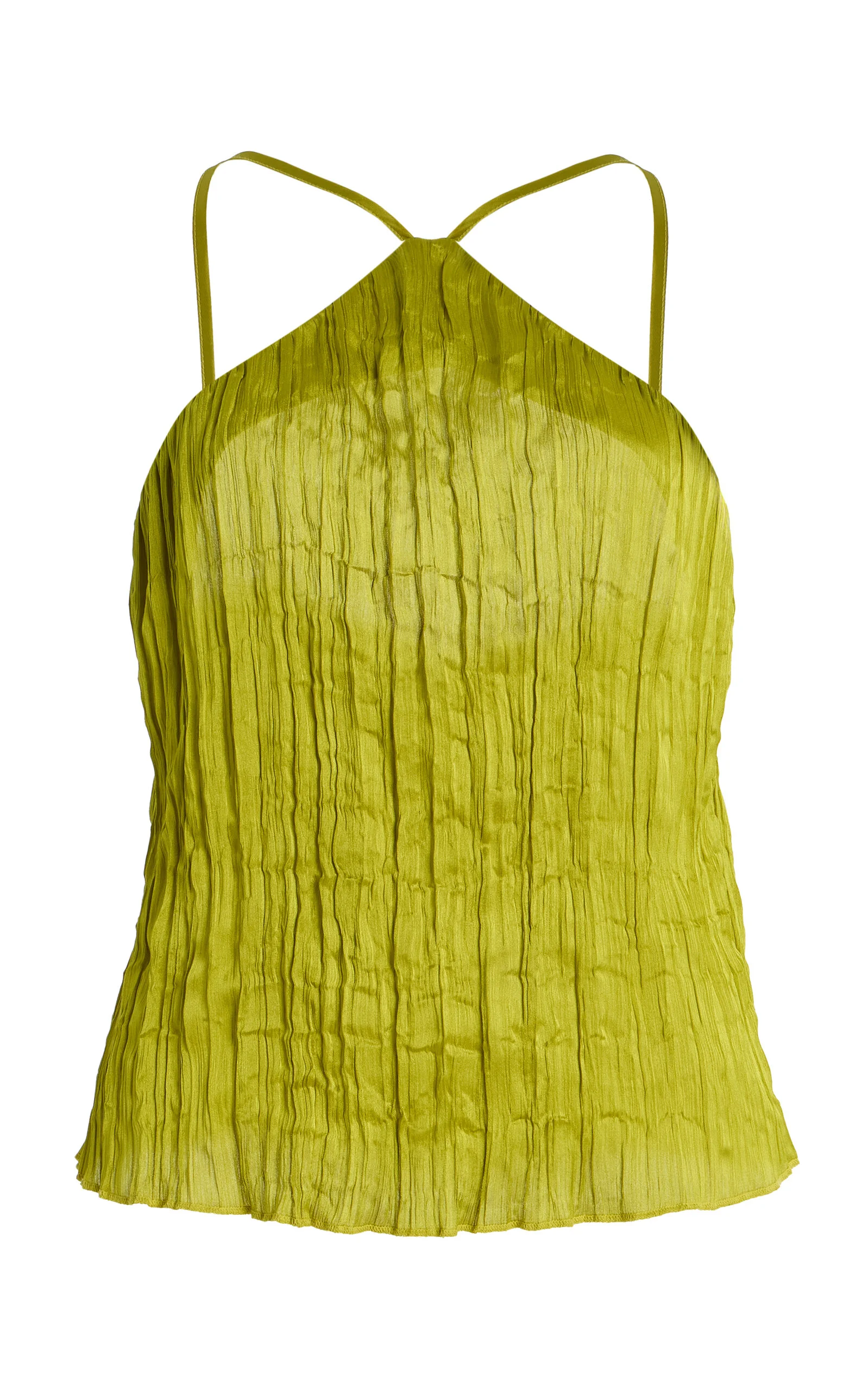 Sarah Staudinger and George Augusto co-founded the LA-based brand upon the idea that fashion shouldn't just empower women — it should be accessible, too. The 'Akari' top is made from crinkled satin that hangs from adjustable halter straps. Pair it with the Mai skirt. PRODUCT DETAILS - Resort '26 - Zip fastening - Composition: 100% polyester; Lining: 97% polyester, 3% elastane - Designer color: Chartreuse - Dry clean - Imported