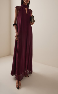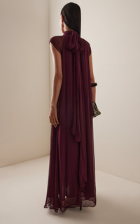 Sarah Staudinger and George Augusto co-founded the LA-based brand upon the idea that fashion shouldn't just empower women — it should be accessible, too. Made from voluminous chiffon that's lined for coverage, this ankle-grazing dress has long ties that knot at the back. Add gold jewels and heels to complete your look. PRODUCT DETAILS - Fall '25 - Ties at back - Composition: 100% polyester; lining: 100% viscose - Dry clean - Imported SIZE & FIT - Our model is wearing a size Small - Model is 5'9.5" with a 32" bust, 24" waist, and 35.5" hip - Fits true to size, our fit specialist recommends taking your normal size