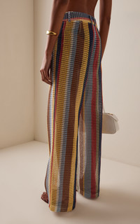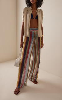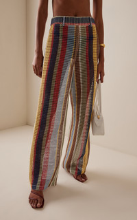 Sarah Staudinger and George Augusto co-founded the LA-based brand upon the idea that fashion shouldn't just empower women — it should be accessible, too. Made from a colorfully striped crochet knit, the 'Cora' pull-on pants have an elasticized waistband with a trouser effect. PRODUCT DETAILS - Pre-Fall '25 - Pull on - Composition: 100% polyester - Designer color: Market Stripe - Dry clean - Imported SIZE & FIT - Designed for a relaxed fit