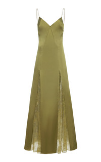 Exclusive Trinity Lace-Inset Silk Maxi Slip Dress green