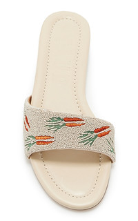 Sarah Staudinger and George Augusto co-founded the LA-based brand upon the idea that fashion shouldn't just empower women — it should be accessible, too. The 'Gracie' features a beaded toe strap decorated with carrots — note how it angles inward for a more comfortable fit. The footbeds are lightly padded. PRODUCT DETAILS - Slip on - Composition: leather, beads - Designer color: Carrot Cake - Imported