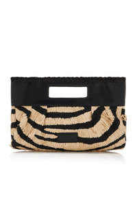 In 2015, Sarah Staudinger and George Augusto co-founded the LA-based brand upon the idea that fashion shouldn’t just empower women — it should be accessible too. The Lena clutch features a leather top handle with a zebra-patterned raffia body. Add the optional shoulder strap. PRODUCT DETAILS - Optional shoulder strap - Open top - Composition: natural raffia; Trim: cow leather - Imported