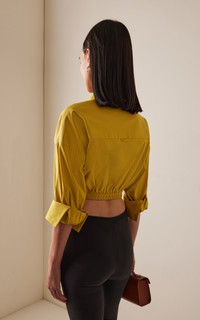 Sarah Staudinger and George Augusto co-founded the LA-based brand upon the idea that fashion shouldn't just empower women — it should be accessible, too. Featuring fixed 3/4 length sleeves for ease, the 'Lisa' top is a cropped button-front shirt with a center front tie and elasticated waistband. PRODUCT DETAILS - Pre-Fall '25 - Button fastening - Composition: 98% cotton, 2% spandex - Designer color: Chartreuse - Dry clean - Imported SIZE & FIT - Designed for a relaxed fit