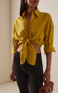 Lisa Cropped Cotton Tie-Front Shirt yellow