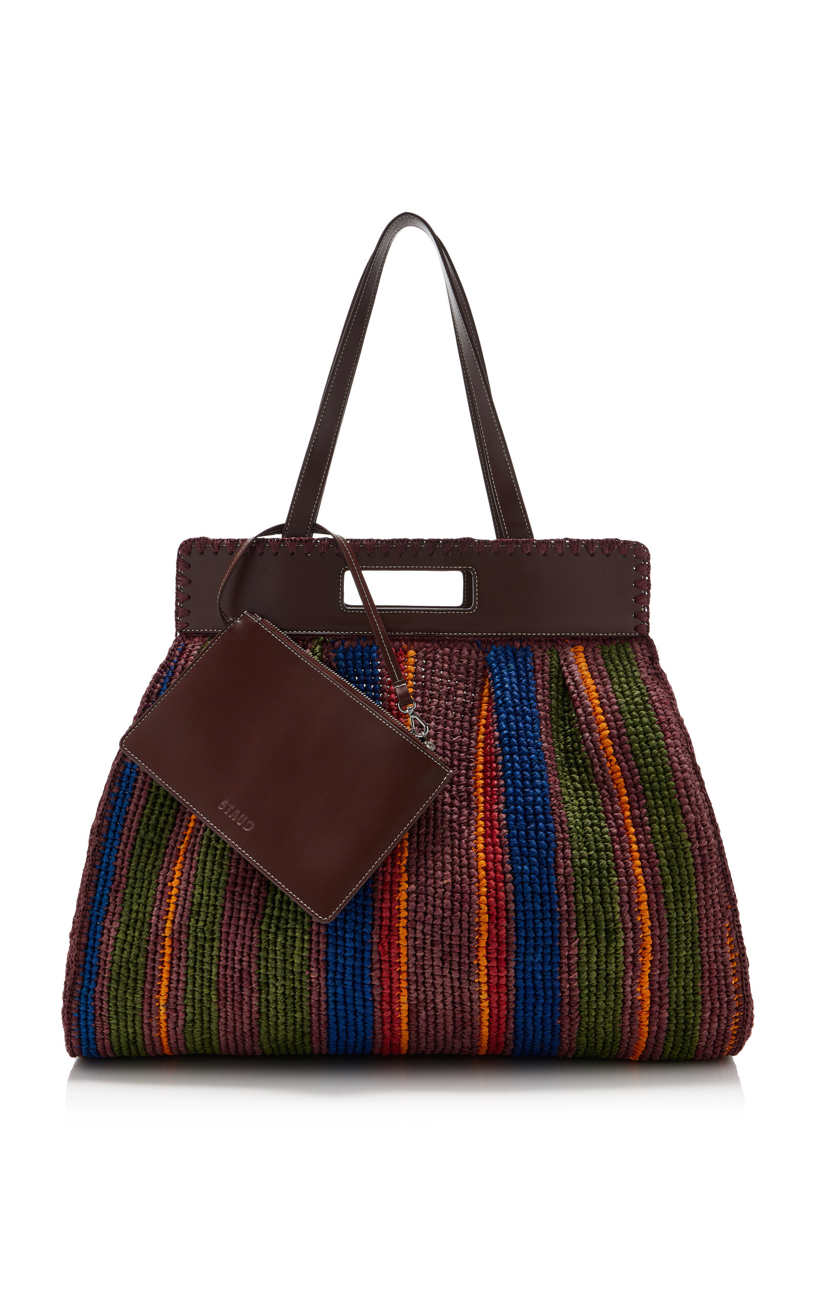 STAUD RUE TOTE BAG JUNGLE STRIPE RAFFIA