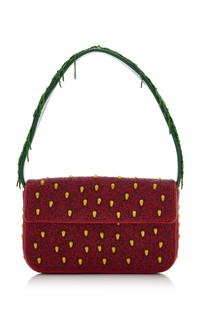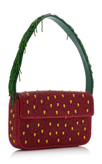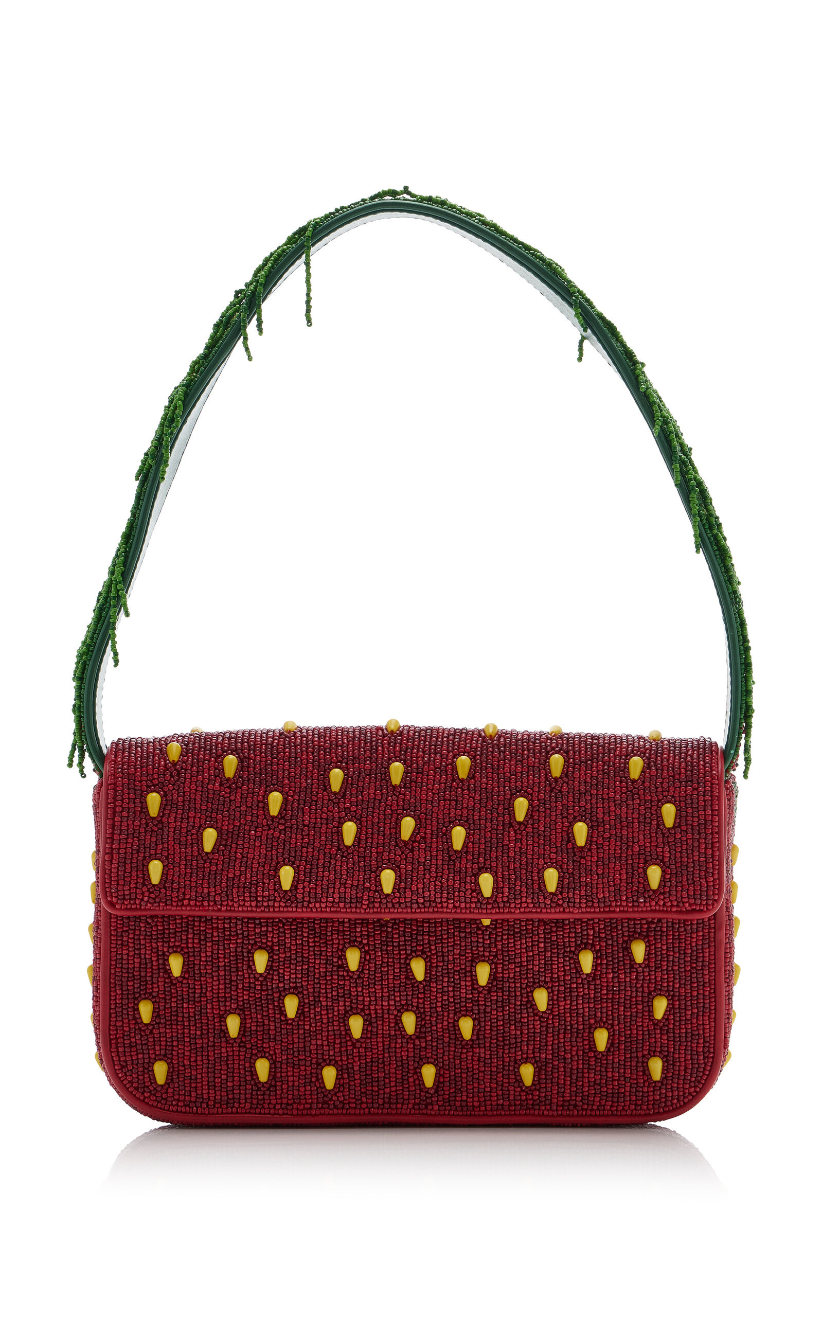 In 2015, Sarah Staudinger and George Augusto co-founded the LA-based brand upon the idea that fashion shouldn’t just empower women — it should be accessible too. The 'Tommy' bag is redesigned each season in new vibrant prints and patterns. This iteration is hand-beaded with a strawberry pattern and trimmed vegan leather piping. It has a single flap closure, inner zip pouch and magnetic pocket on the back. PRODUCT DETAILS - Magnetic fastening - Composition: 100% rayon; Trim: 100% polyurethane; Detail: glass beads - Designer color: Strawberry Dream - Imported