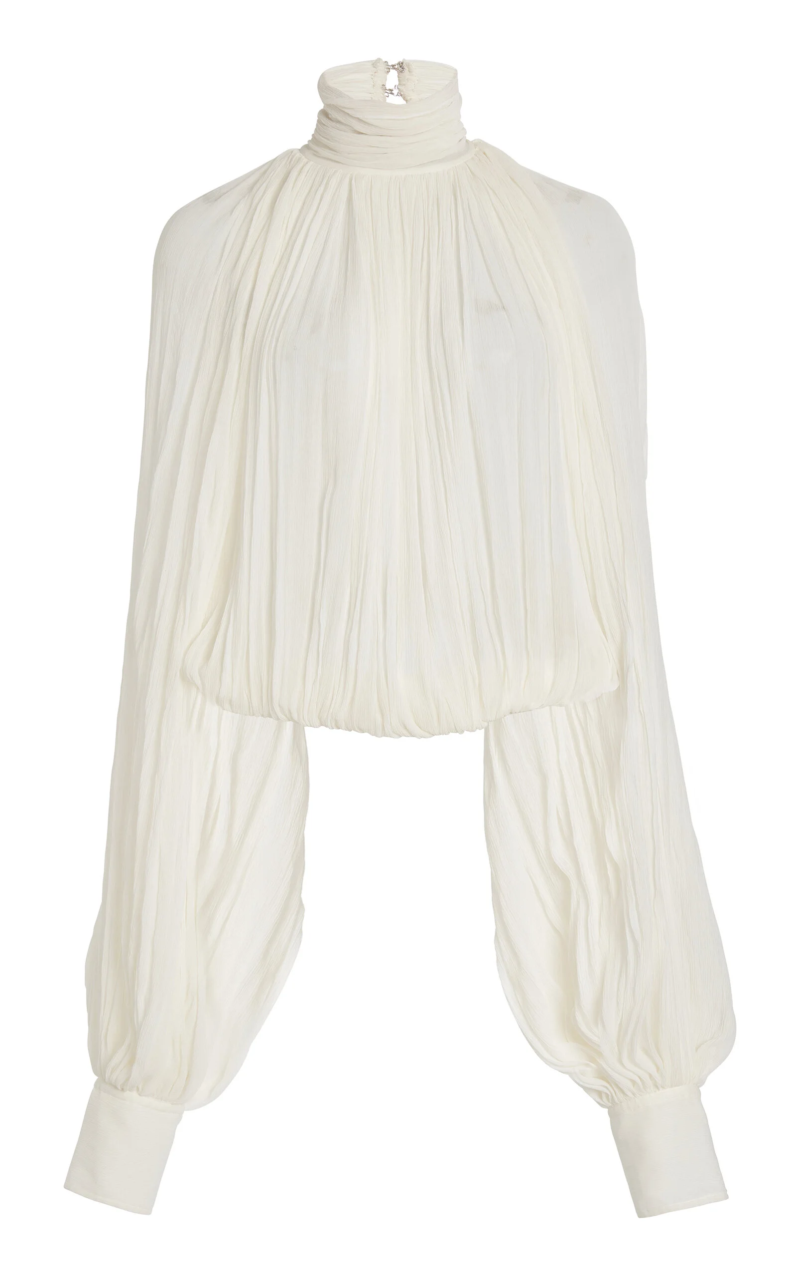 PRODUCT DETAILS - Cape sleeve, high neck, pleated and gathered, loose fit - Concealed zip fastening along back - Unlined - Composition: 100% Silk - Color: 9001 - Dry clean only - Spring/Summer '25