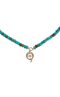 Since 2001, L.A. designer Rosanne Karmes has captured a blend of whimsy and spirituality that’s made her an A-list favorite. In this selection, find playful spins on motifs and charms that are said to inspire happiness and protection. PRODUCT DETAILS - Clasp fastening - Composition: 14K yellow gold 2.17g, 7 white diamonds 0.028ct, Turquoise, - Imported - Please note the possibility of natural inclusions in gemstones