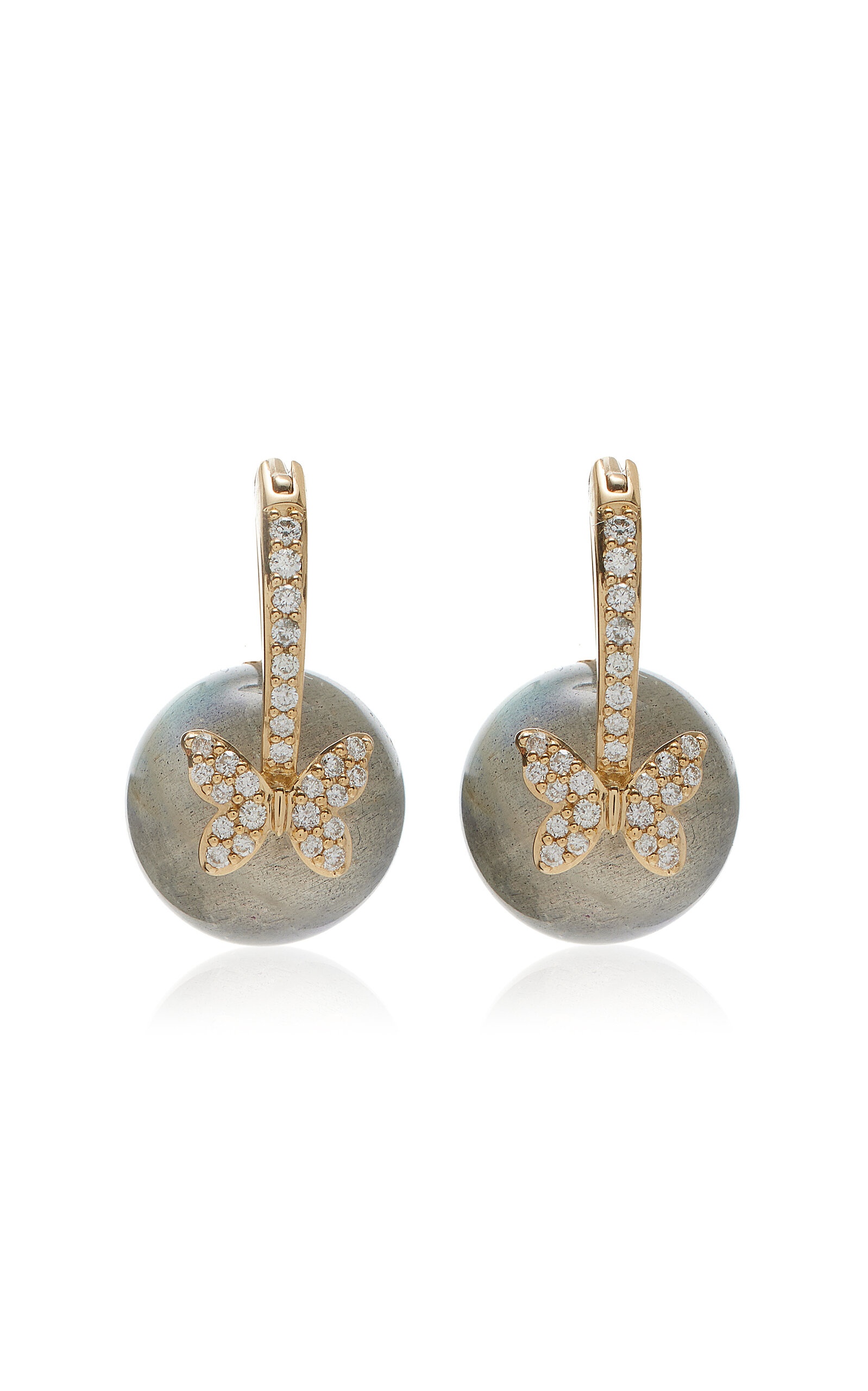 Butterfly 14-karat gold, labradorite and diamond earrings Gray
