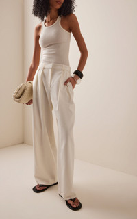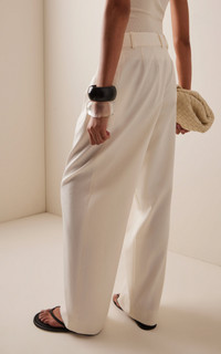 The Frankie Shop has garnered a cult following for its wardrobe staples that are classic but never boring. Founded by Gaelle Drevet, it's become our go-to for unfussy, on-trend basics that won't break the bank. Demonstrating sharp tailoring, these ‘Daytona’ pants are designed with a straight cut through the leg, shaped by box pleats sat beneath the waistline. Complete this minimal look with a matching blazer worn over a simple tank top. PRODUCT DETAILS - Spring '25 - Zip fastening - Composition: 55% polyester, 45% virgin wool - Designer color: Cement - Dry clean - Imported SIZE & FIT - Designed for a slim fit