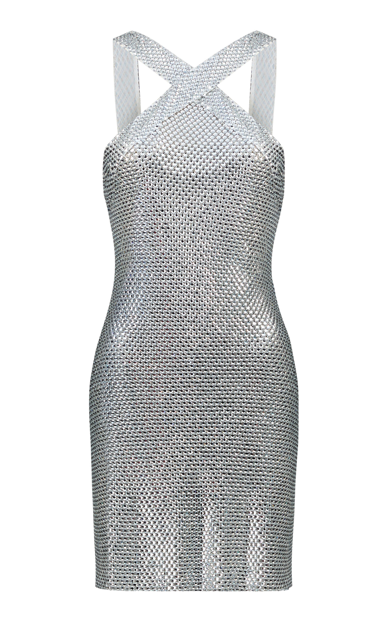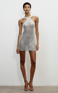 PRODUCT DETAILS - Slim fit, sleeveless, halter neck - Zipper fastening on back - Composition: 100% Polyester - Color: Silver - Dry Clean Only - Pre Fall '25