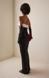 Rhea strapless satin-trimmed crepe gown Black