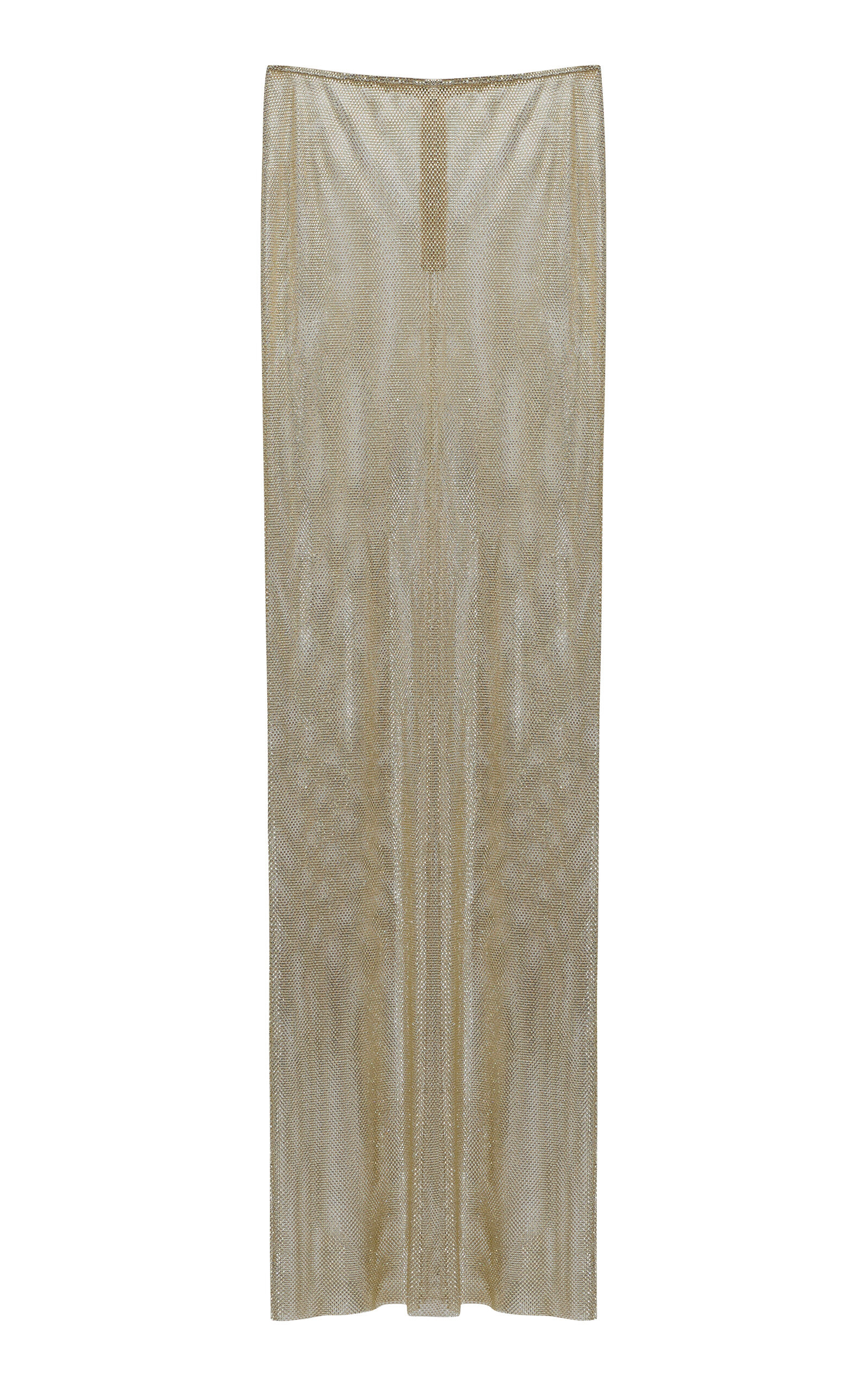 PRODUCT DETAILS - Slim fit, low rise - Zipper fastening on back - Composition: 100% Polyester - Color: Gold - Dry Clean Only - Pre Fall '25