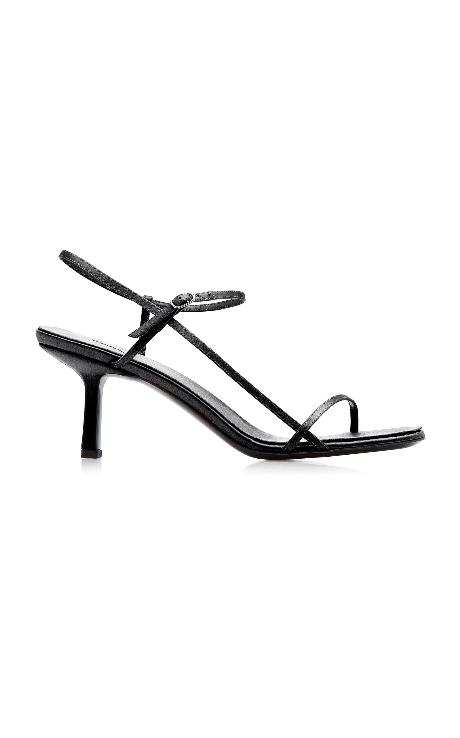 With a focus on exceptional fabrics, impeccable details and uncompromising quality, The Row explores the strength of simplistic shapes, resulting in timeless staples with subtle irreverence. The aptly titled 'Bare' sandals have a strappy silhouette made from silky satin set on a walkable midi heel. Wear them day or night with the label's sleek separates. PRODUCT DETAILS - Heel measures approximately 75mm / 3 inches - Buckle fastening at ankle strap - Composition: 72% viscose, 28% silk; Sole: 100% leather - Made in Italy