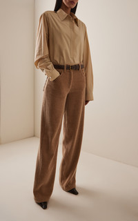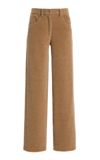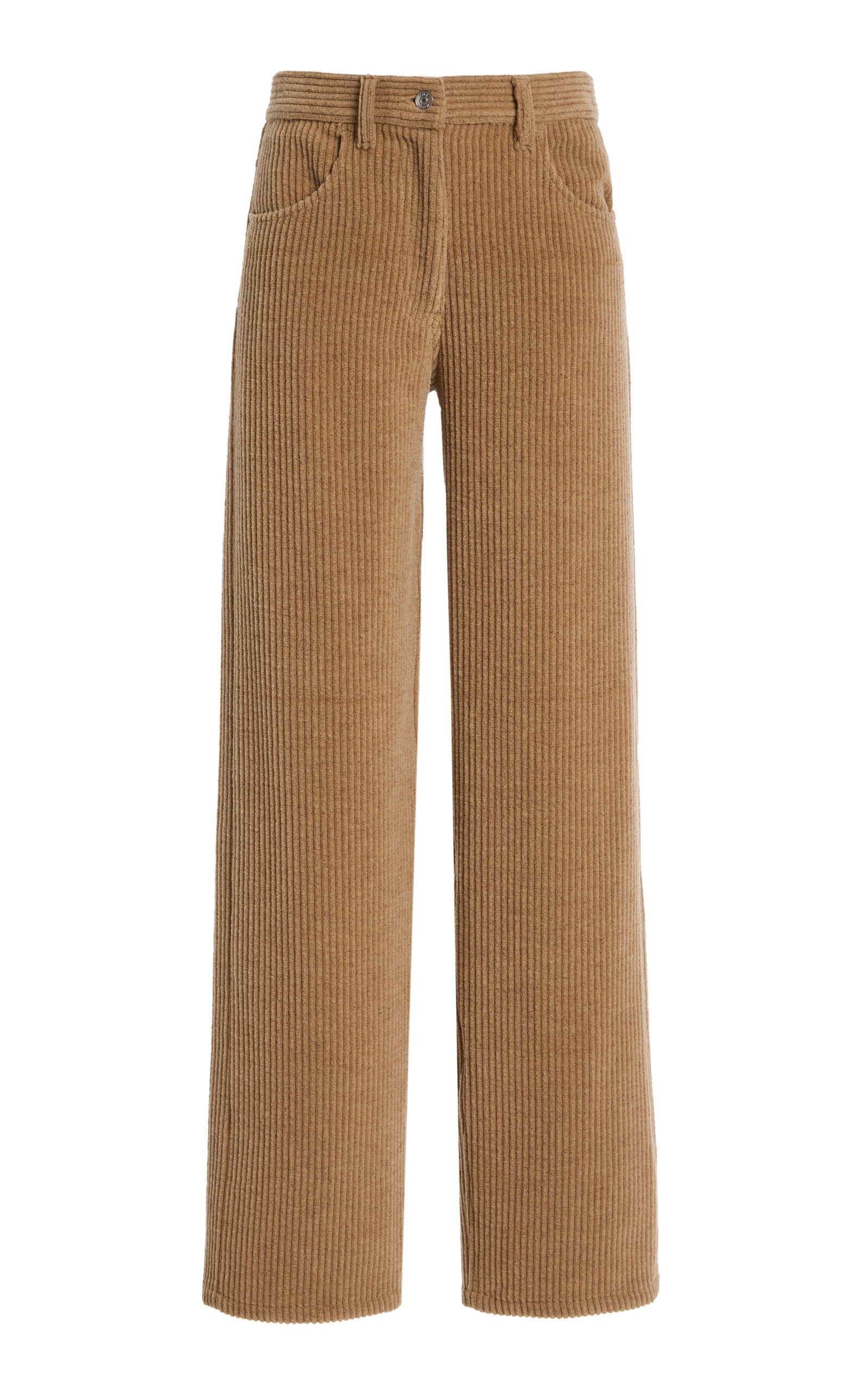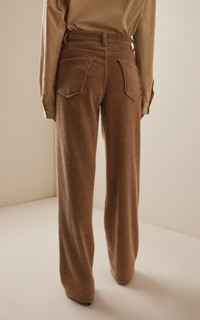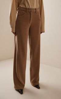 With a focus on exceptional fabrics, impeccable details and uncompromising quality, The Row explores the strength of simplistic shapes, resulting in timeless staples with subtle irreverence. Channel the 90’s in The Row’s ‘Claire’ pants. They have a mid-rise waist and a relaxed fit through the leg, cut from chunky corduroy with a tactile finish. Wear with shrunken tees or oversized shirts. PRODUCT DETAILS - Fall/Winter ‘25 - Zip fastening - Composition: 37% wool, 32% cotton, 17% polyamide - Dry clean - Designer Color: Anise - Made in Italy SIZE & FIT - Our model is wearing a size 26 - Model is 5'10” with a 31” bust, 23.5” waist, and 33.5” hip - Fits true to size, our fit specialist recommends taking your normal size