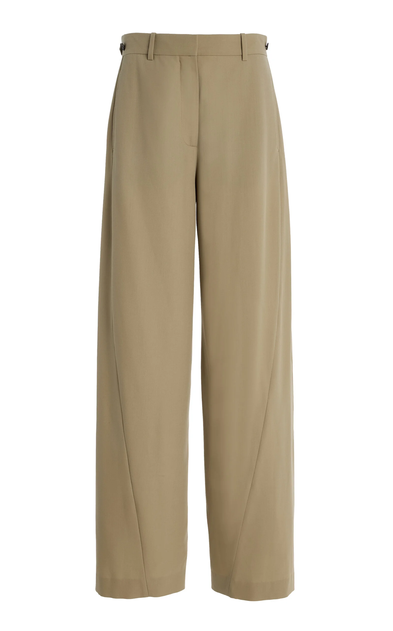 With a focus on exceptional fabrics, impeccable details and uncompromising quality, The Row explores the strength of simplistic shapes, resulting in timeless staples with subtle irreverence. These pants, crafted from ‘fluid tailoring gabardine’, boast a high waistline with adjustable tabs, and a straight-cut leg with curved seams. Style with a satin shirt to lighten the mood. PRODUCT DETAILS - Fall/Winter ‘25 - Zip fly fastening - Composition: 100% virgin wool; Lining: 100% silk - Dry clean - Designer Color: Fossil - Made in Italy SIZE & FIT - Our model is wearing a size 2 - Model is 5'10” with a 31” bust, 23.5” waist, and 33.5” hip - Fits true to size, our fit specialist recommends taking your normal size