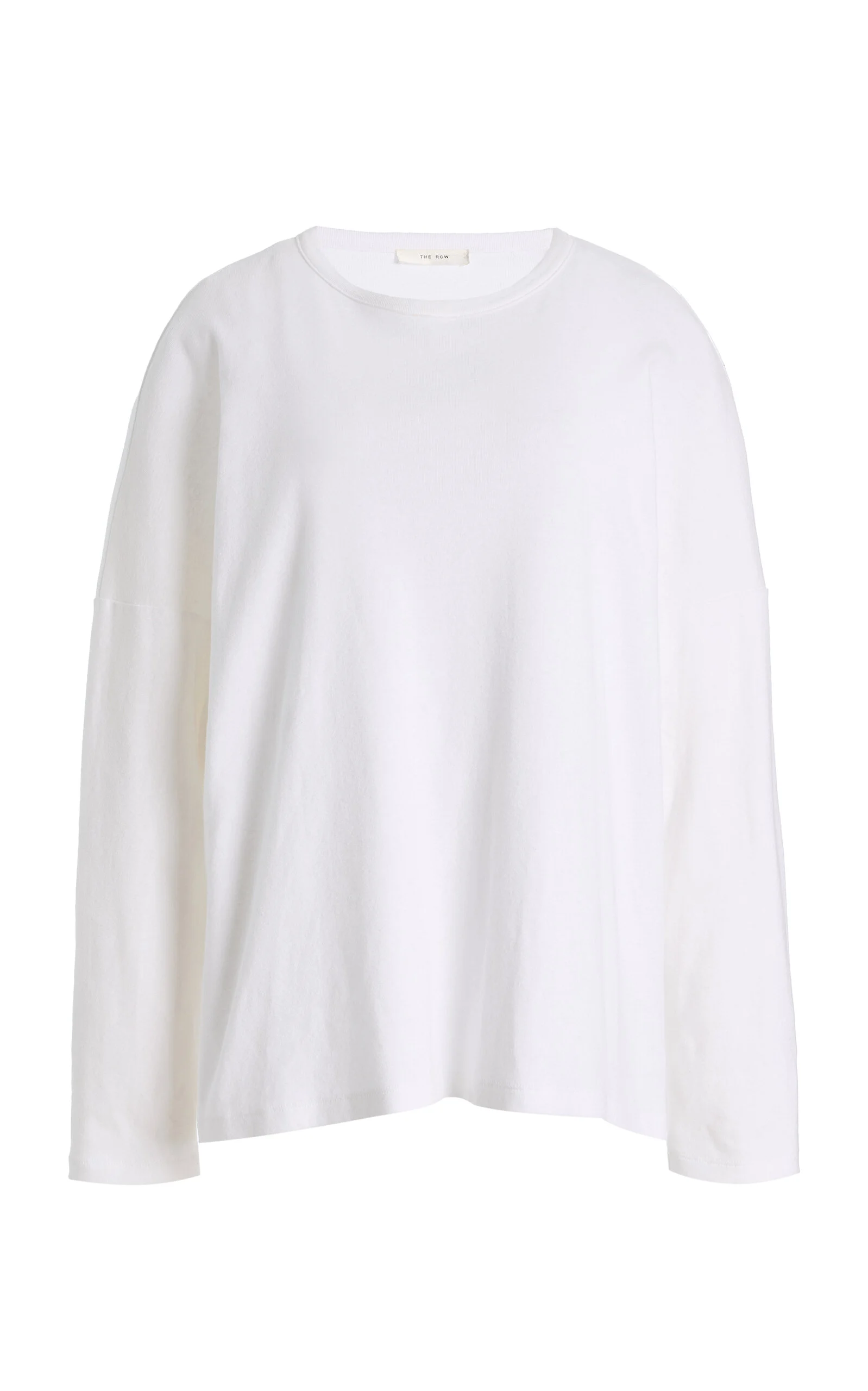 With a focus on exceptional fabrics, impeccable details and uncompromising quality, The Row explores the strength of simplistic shapes, resulting in timeless staples with subtle irreverence. This relaxed long-sleeve tee is crafted from cotton-jersey granted a subtle slub texture. ‘Floris’ boasts dropped shoulders, and wide long sleeves to match its generous frame. Style casually with a coordinating jersey maxi or dress it up with tailored pants. PRODUCT DETAILS - Spring/Summer ‘26 - Slip on - Composition: 100% cotton - Dry clean - Made in Italy