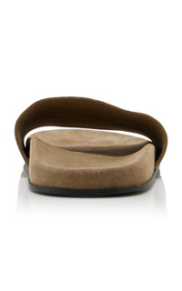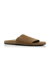 With a focus on exceptional fabrics, impeccable details and uncompromising quality, The Row explores the strength of simplistic shapes, resulting in timeless staples with subtle irreverence. Elevated slide sandals crafted from buttery suede leather and finished with a moulded footbed. PRODUCT DETAILS - Slip on - Composition: 100% suede - Made in Italy