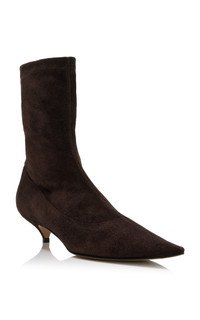 With a focus on exceptional fabrics, impeccable details and uncompromising quality, The Row explores the strength of simplistic shapes, resulting in timeless staples with subtle irreverence. Streamlined ankle boot in supple stretch calfskin suede with pointed toe, low kitten heel, and inner side zip closure. PRODUCT DETAILS - Zip fastening - Composition: stretch calfskin suede - Made in Italy