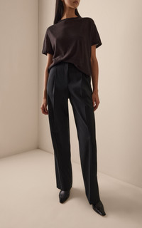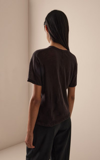 With a focus on exceptional fabrics, impeccable details and uncompromising quality, The Row explores the strength of simplistic shapes, resulting in timeless staples with subtle irreverence. Relaxed, short-sleeved t-shirt in soft cashmere jersey with ribbed crewneck and signature center back detail. PRODUCT DETAILS - Fall '25 - Slip on - Composition: 100% goat cashmere - Dry clean - Made in Italy SIZE & FIT - Our model is wearing a size Small - Model is 5’10” with a 30” bust, 24” waist, and 34” hip