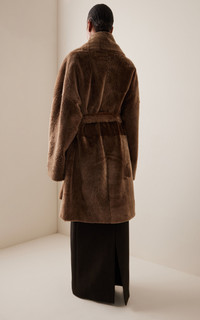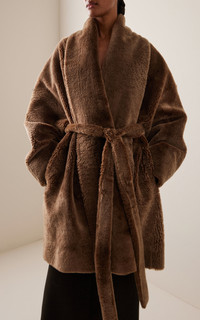 With a focus on exceptional fabrics, impeccable details and uncompromising quality, The Row explores the strength of simplistic shapes, resulting in timeless staples with subtle irreverence. The 'Lucja' robe coat is crafted in Italy from fine lambskin shearling with a plushness you'll have to touch to believe. PRODUCT DETAILS - Resort '25 - Self-belt tie fastening - Composition: 100% Lambskin Shearling - Designer color: Moss - Dry clean only - Made in Italy SIZE & FIT - Our model is wearing a size US 2 - Model is 5'10" with a 30" bust, 24" waist, and 34" hip - Designed for an oversized fit