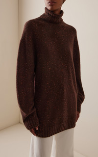 With a focus on exceptional fabrics, impeccable details and uncompromising quality, The Row explores the strength of simplistic shapes, resulting in timeless staples with subtle irreverence. 'Mirai' is an oversized turtleneck sweater made from Donegal-flecked cashmere. PRODUCT DETAILS - Resort '26 - Slip on - Composition: 100% goat cashmere - Designer color: Brown/ Saffron - Dry clean - Made in Italy