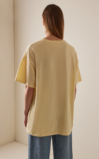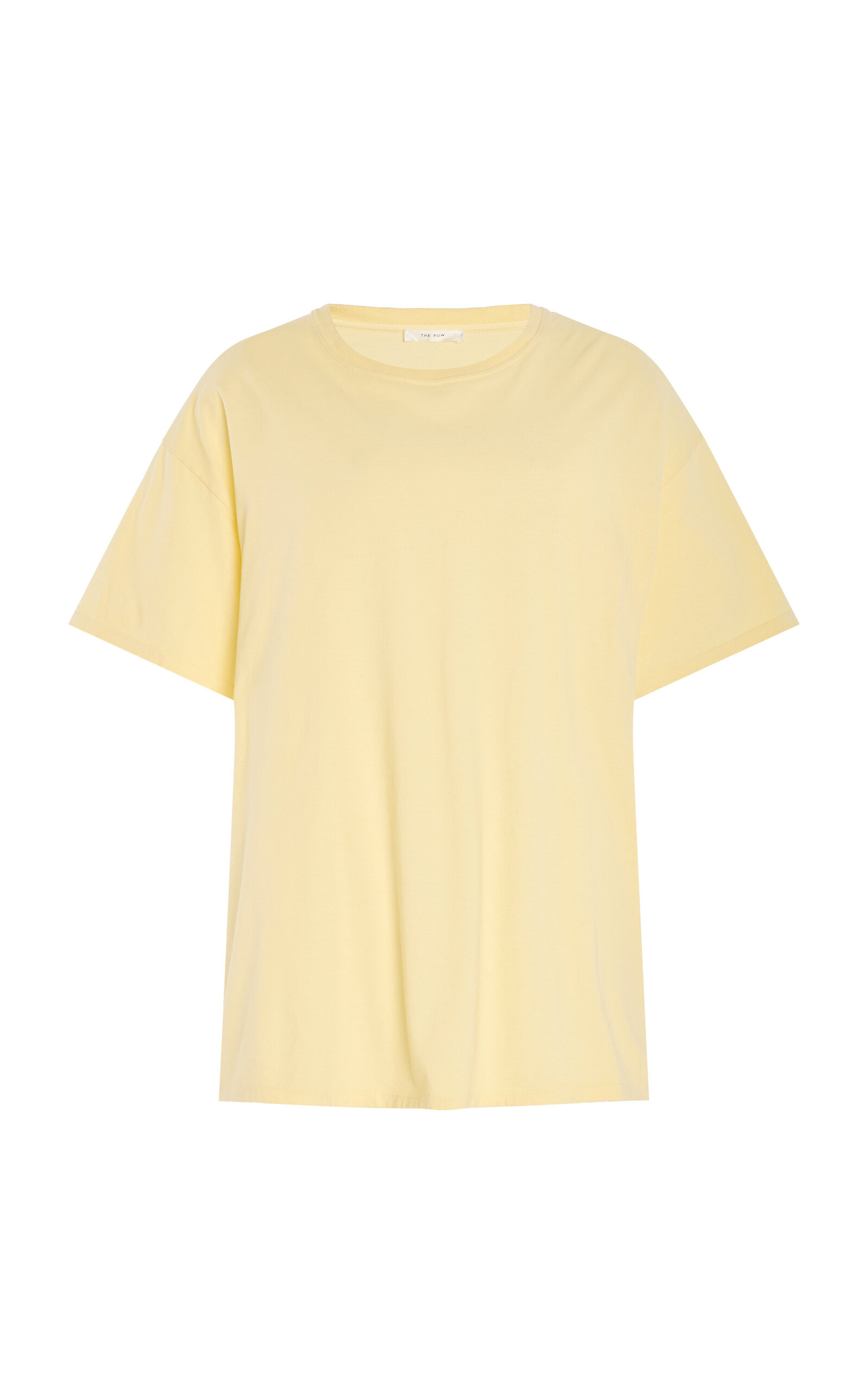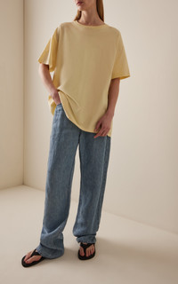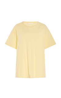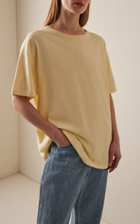 With a focus on exceptional fabrics, impeccable details and uncompromising quality, The Row explores the strength of simplistic shapes, resulting in timeless staples with subtle irreverence. The ‘Nadina’, delivered in a bespoke pastel hue, is designed with a classic crewneck, dropped shoulders and an oversized fit for a touch of masculinity. Made from breathable cotton-jersey, this comfortable top can be styled as a single layer or underneath a boxy blazer. PRODUCT DETAILS - Spring/Summer ‘25 - Slip on - Composition: 100% cotton - Machine wash - Designer color: Ply - Made in Italy SIZE & FIT - Our model is wearing a size Small - Model is 5'8.5" with a 31" bust, 23" waist, and 34" hip