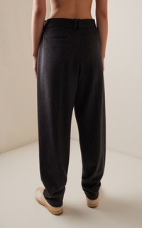 With a focus on exceptional fabrics, impeccable details and uncompromising quality, The Row explores the strength of simplistic shapes, resulting in timeless staples with subtle irreverence. The 'Richelle' is a mid-rise tailored pant in brushed mid-weight cashmere with tapered leg, pressed front and back creases, and side seam pockets. PRODUCT DETAILS - Resort '25 - Concealed zip and hook fastening - Composition: 100% Goat Cashmere; Combo: 100% Silk - Dry clean only - Imported SIZE & FIT - Designed for a slim fit