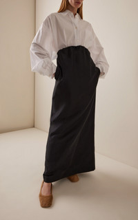 With a focus on exceptional fabrics, impeccable details and uncompromising quality, The Row explores the strength of simplistic shapes, resulting in timeless staples with subtle irreverence. The 'Saul' maxi skirt is crafted from cotton-silk faille with a paper-bag waist designed to sit high. PRODUCT DETAILS - Pre-Fall '25 - Slip on - Composition: 69% Cotton, 31% Silk - Dry clean only - Made in Italy SIZE & FIT - Our model is wearing a size US 2 - Model is 5'10" with a 30" bust, 24" waist, and 34" hip - Designed for a relaxed fit