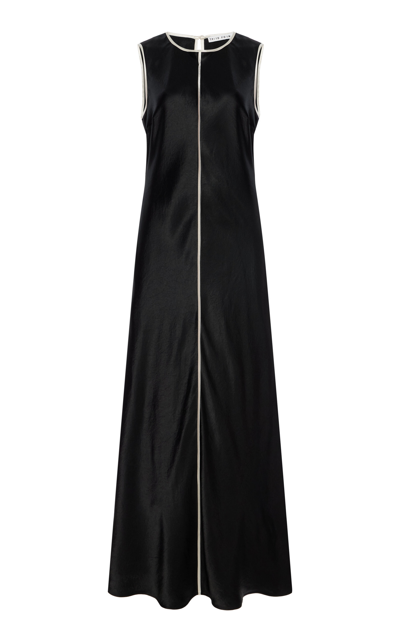 Contrast-Trimmed Crepe Maxi Dress black/white