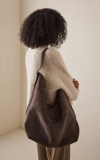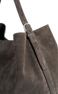 With its signature clean lines and minimalist style, Stockholm-based Toteme is the quintessential Scandi-cool. Elin Kling designs each collection as a modern uniform, looking to vintage pieces for inspiration and giving its cult following a dress code for every day. A tote bag crafted in Italy from light, soft and fluid suede that drapes naturally next to the body. It has an adjustable strap with a silver-tone metal buckle and opens with a small clasp to a resin-coated interior with two pockets. Carry it alongside everyday edits. PRODUCT DETAILS - Clasp fastening - Composition: LWG cow suede - Designer color: Granite - Made in Italy SIZE & FIT - This item measures 14.5 x 11.4 x 10.2" - Strap drop length: adjustable 11.4" (on middle hole)