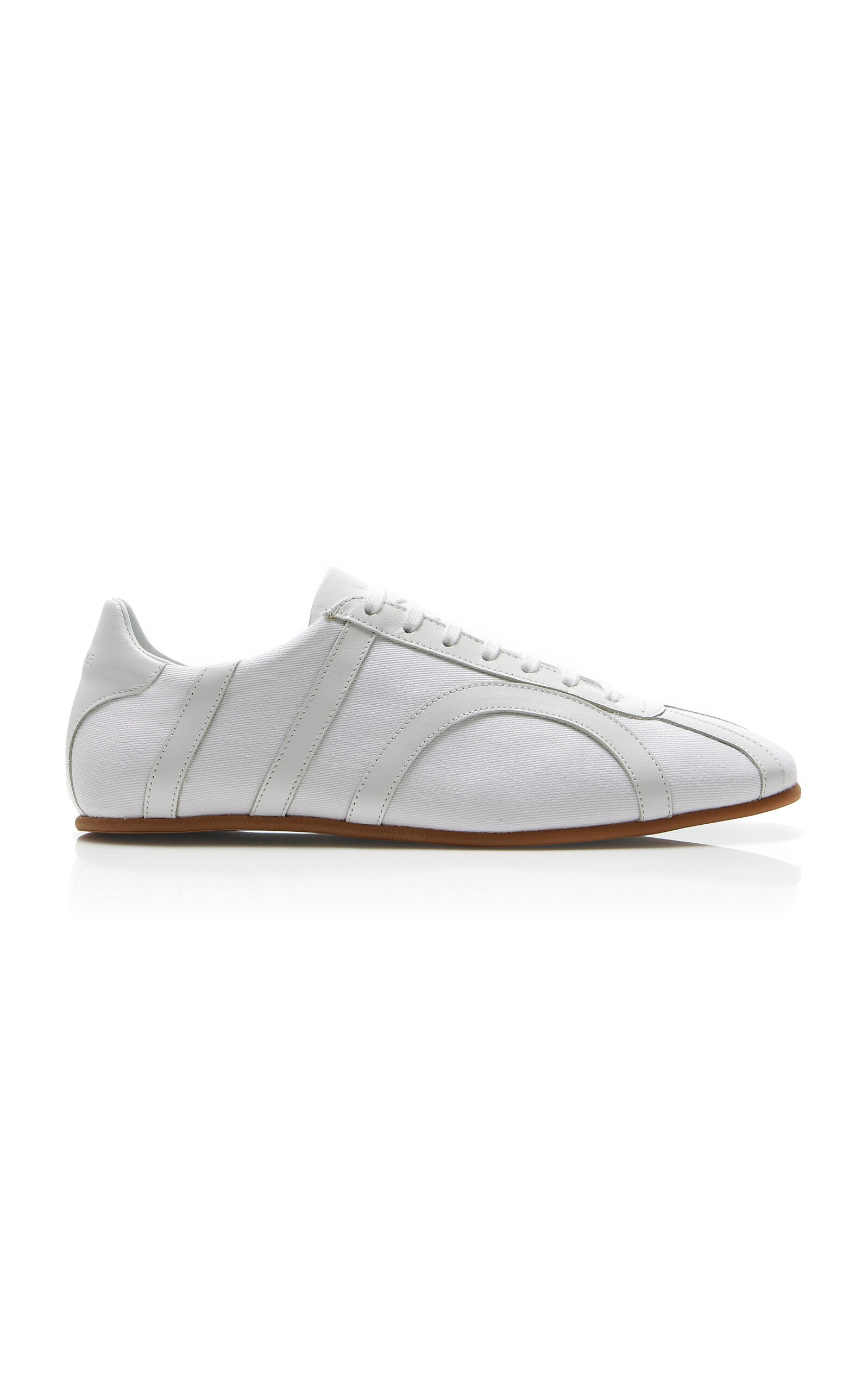 With its signature clean lines and minimalist style, Stockholm-based Toteme is the quintessential Scandi-cool. Elin Kling designs each collection as a modern uniform, looking to vintage pieces for inspiration and giving its cult following a dress code for every day. These sneakers are defined by its leather trim that mimics TOTEME's monogram. They're handmade in Italy from recycled cotton canvas into a round-toe silhouette with cotton laces and a steady rubber base. PRODUCT DETAILS - Lace-up fastening - Composition: 100% recycled cotton - Made in Italy