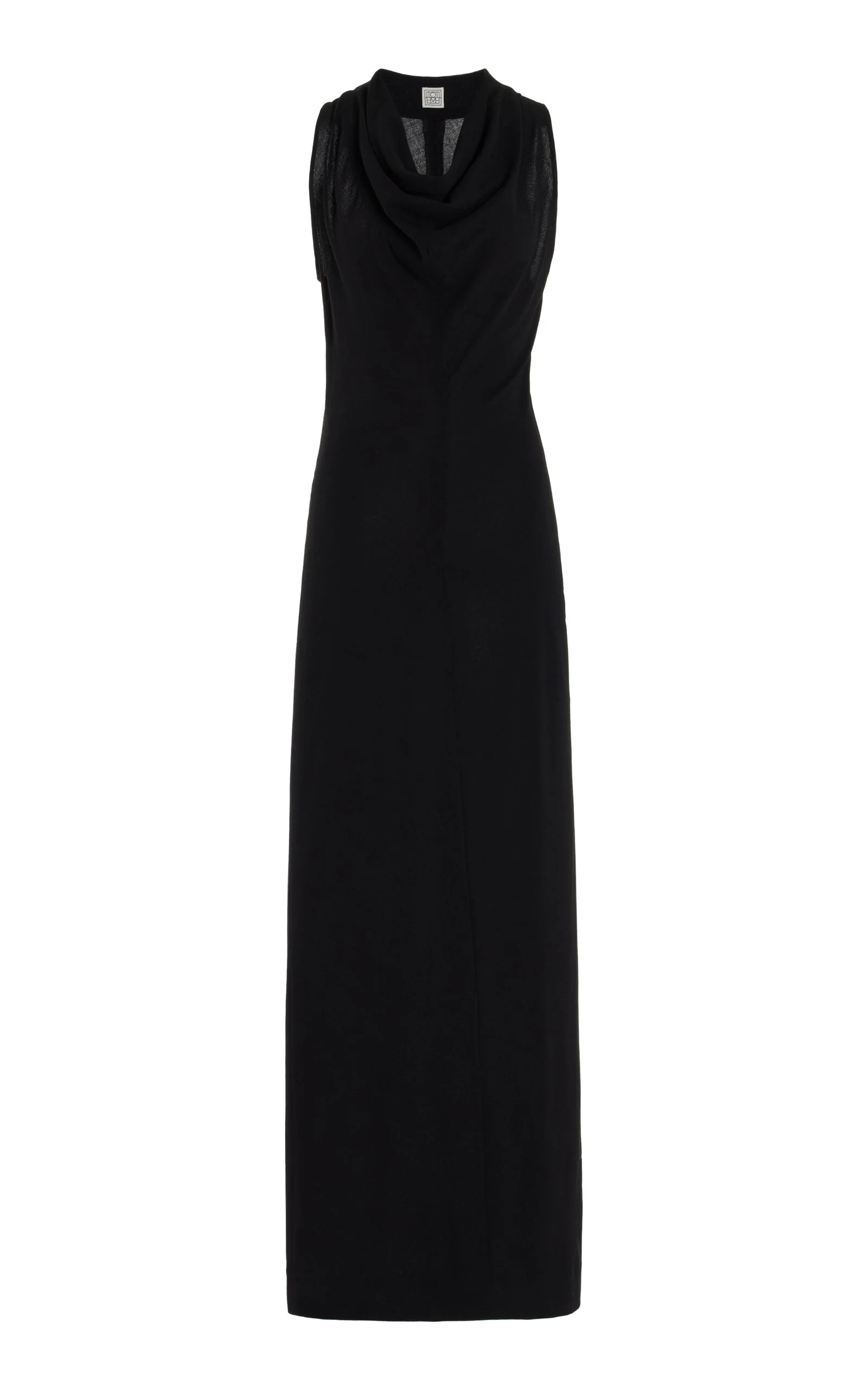 With its signature clean lines and minimalist style, Stockholm-based Toteme is the quintessential Scandi-cool. Elin Kling designs each collection as a modern uniform, looking to vintage pieces for inspiration and giving its cult following a dress code for every day. This ankle-length dress is made from fluid crepe that grazes over the body from the cowl neckline. PRODUCT DETAILS - Resort '25 - Zip fastening along side - Composition: viscose, wool - Dry clean - Imported SIZE & FIT - Our model is wearing a size FR 34 - Model is 5'10" with a 33" bust, 24" waist, and 36" hip - Designed for a slim fit