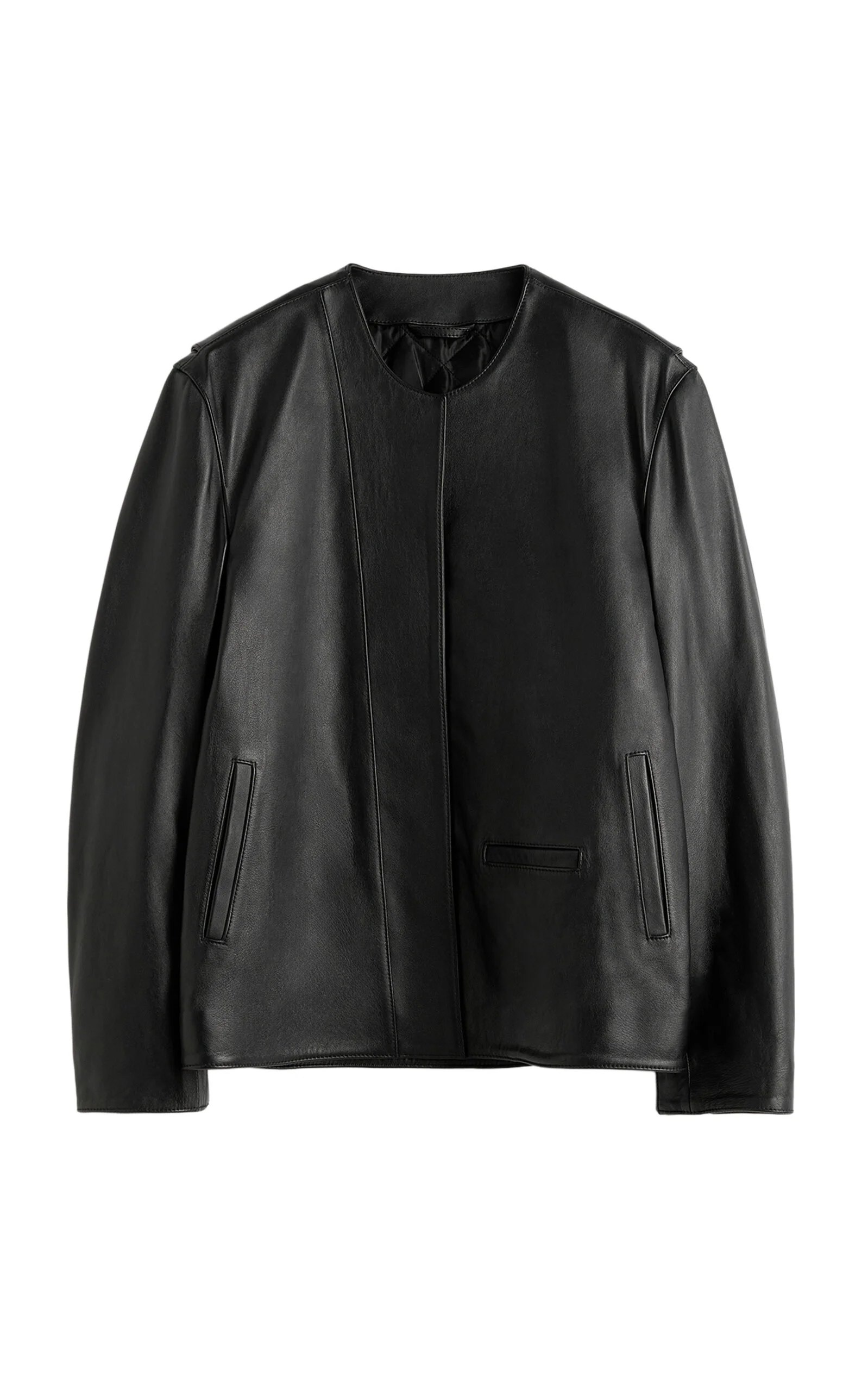 With its signature clean lines and minimalist style, Stockholm-based Toteme is the quintessential Scandi-cool. Elin Kling designs each collection as a modern uniform, looking to vintage pieces for inspiration and giving its cult following a dress code for every day. A balance of biker edge with clean tailoring, this leather jacket has a supple feel and minimal detailing. PRODUCT DETAILS - Spring '26 - Zip fastening through front - Composition: Nappa leather - Dry clean - Imported SIZE & FIT - Designed for a relaxed fit