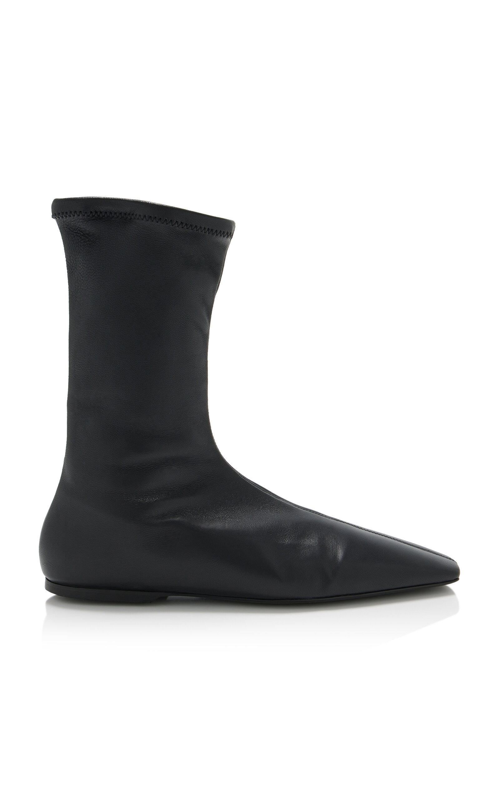 With its signature clean lines and minimalist style, Stockholm-based Toteme is the quintessential Scandi-cool. Elin Kling designs each collection as a modern uniform, looking to vintage pieces for inspiration and giving its cult following a dress code for every day. Crafted from supple, LWG-certified stretch nappa leather, these sock boots feature a square toe and a close-fitting, ankle-hugging silhouette. PRODUCT DETAILS - Slip on - Composition: Stretch nappa Lwg - Made in Italy