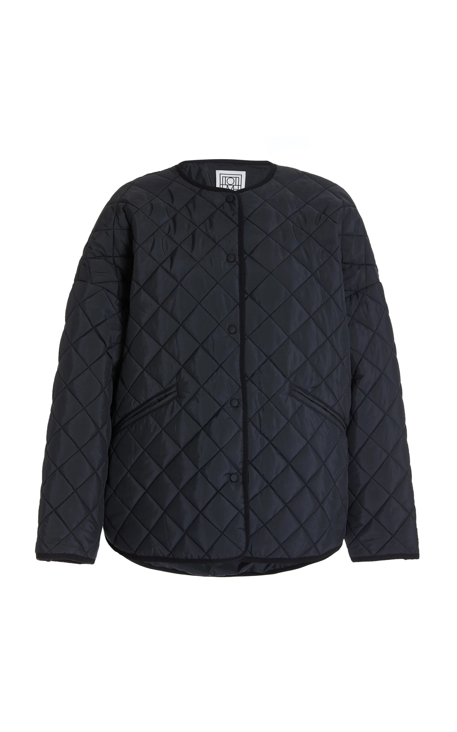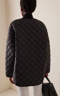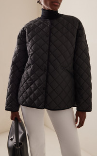 Toteme was launched to create the perfect modern uniform, with strategic tailoring and meticulous craftsmanship. The Stockholm-based brand uses its collections to bring a dress code to its clients, bridging the gap between essential items and holiday wear to achieve a well-curated day-to-day wardrobe. Designed with an oversized, boxy fit, this snap-front jacket has a Japanese-inspired design made from recycled polyester with a diamond quilt. Layer it over the label's cozy knitwear during transitional months. PRODUCT DETAILS - Snap fastenings through front - Composition: 100% polyester - Dry clean - Imported SIZE & FIT - Our model is wearing a size Small - Model is 5'10" with a 34" bust, 24" waist, and 35" hip - Fits true to size, our fit specialist recommends taking your normal size