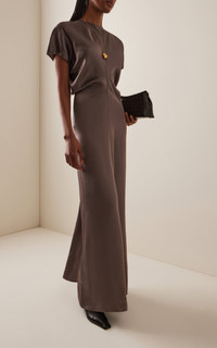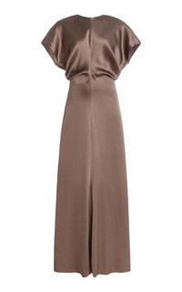 With its signature clean lines and minimalist style, Stockholm-based Toteme is the quintessential Scandi-cool. Elin Kling designs each collection as a modern uniform, looking to vintage pieces for inspiration and giving its cult following a dress code for every day. This dress is constructed from curved panels that create a slouching effect at the waist when sewn together. It is tailored from satin with cap sleeves and an ankle-grazing hem and fastens with a concealed back zipper. PRODUCT DETAILS - Fall '25 - Zip fastening - Composition: 100% viscose - Dry clean - Imported
