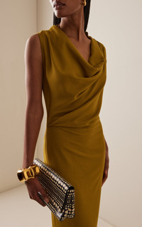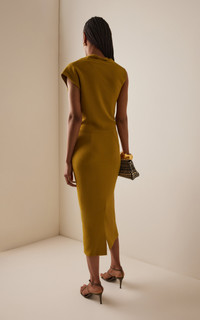 Expertly crafted with luxury fabrics, every Tove collection is thoughtfully made to last through seasons and styles. Co-founders Camille Perry and Holly Wright design classics for the modern woman, and this collection promises clean lines and feminine silhouettes. Tailored from a wooly stretch-crepe, the 'Babette' features a straight-cut skirt topped with a draped bodice. PRODUCT DETAILS - Pre-Fall '25 - Zip fastening - Composition: 70% viscose, 28% wool, 2% elastane - Designer color: Ochre - Dry clean - Made in Portugal