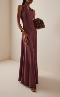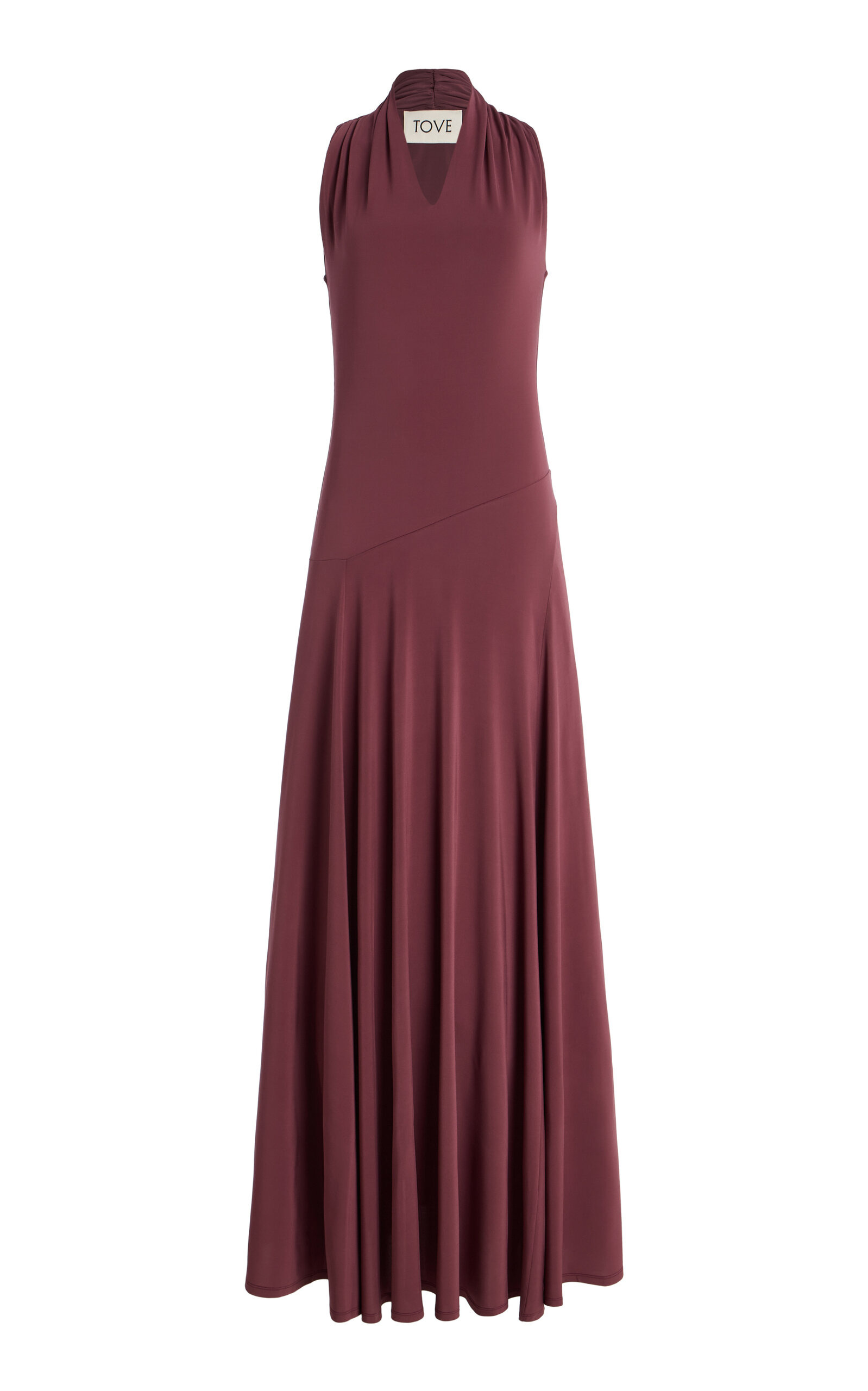 Expertly crafted with luxury fabrics, every Tove collection is thoughtfully made to last through seasons and styles. Co-founders Camille Perry and Holly Wright design classics for the modern woman, and this collection promises clean lines and feminine silhouettes. The 'Vina' V-neck maxi is made from stretchy jersey that's cut on the bias to create fluid movement. PRODUCT DETAILS - Pre-Fall '25 - Slip on - Composition: 95% viscose, 5% elastane - Designer color: Damson - Dry clean - Made in Portugal SIZE & FIT - Our model is wearing a size FR 34 - Model is 5'10" with a 30" bust, 24" waist, and 34" hip - Designed for a slim fit