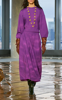 PRODUCT DETAILS - Regular fit, rounded neckline with long bell sleeves, cropped silhouette - Pull Over - Unlined - Composition: 84% Nylon 16% Elastane - Color: purple - Dry Clean Only - Fall-Winter '25