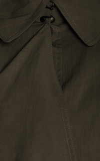 PRODUCT DETAILS - Cape design, pointed collar, draped, knee-length - Button fastening through front - Lined - Composition: 64% Cotton, 36% Polyamide - Color: khaki - Dry clean only - Spring/Summer '25