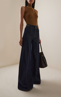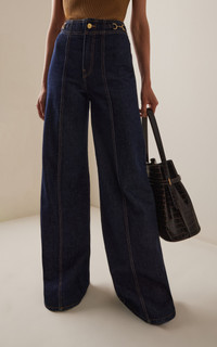 PRODUCT DETAILS - Regular fit, high rise, pipe stitch detailing throughout, wide leg silhouette - Button and Zip Closure - Unlined - Composition: 100% Cotton - Color: dark wash - Dry Clean Only - Fall-Winter '25
