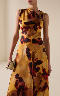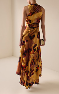 Sleeveless Draped Midi Dress In Amber Floral Print