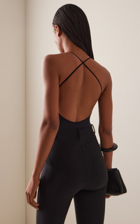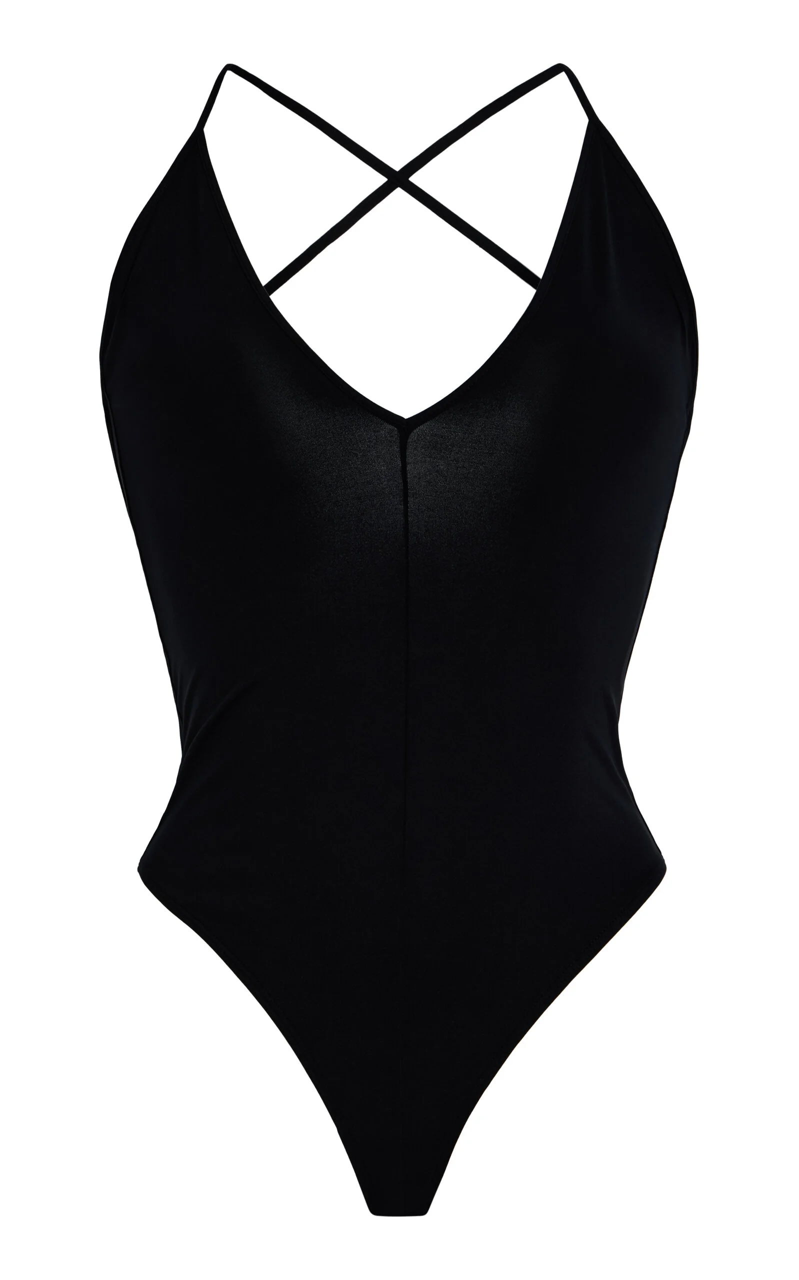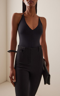 The brainchild of Vogue Australia stylist Christine Centenera and designer Josh Goot, Wardrobe.NYC represents the ultimate in luxurious staples. Think: minimalist blazers, button-down shirts, leggings, and puffer jackets tweaked to utter perfection—courtesy of Goot’s design precision and Centenera’s legendary styling know-how. To seal this wardrobe staple, the label crafts this body from form-fitting jersey, shaping it with a V-neck and thin crossover straps. Tuck yours into capri pants or maxi skirts during the warmer months. PRODUCT DETAILS - Resort ‘26 - Snap fastenings - Composition: 74% polyamide, 26% elastane - Dry clean - Imported