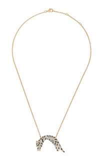18k Yellow Gold Feline Necklace with Black Diamond & Tsavorite black