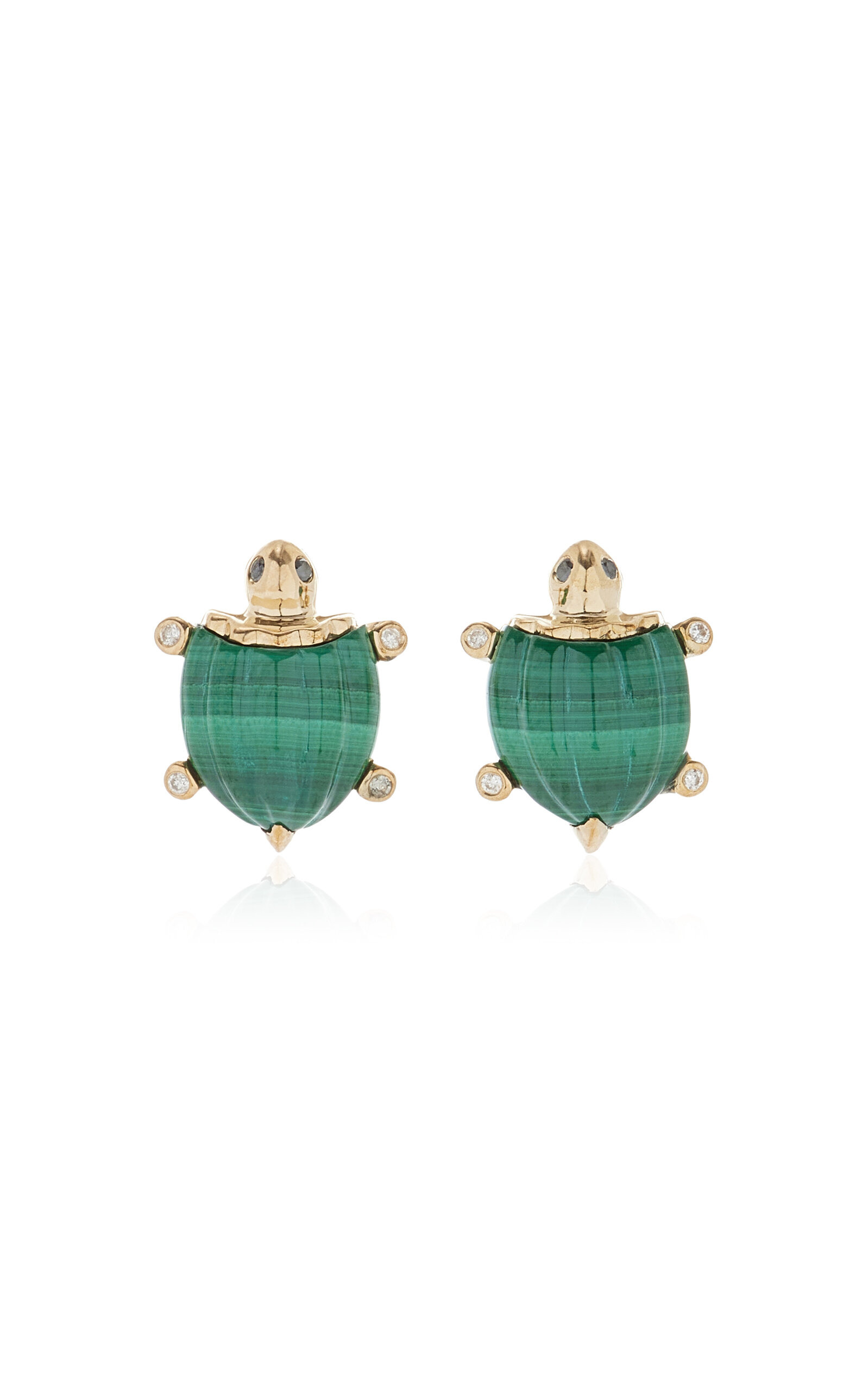 Drawing inspiration from France's unparalleled antiques and vintage markets, Paris-based jeweler Yvonne Léon pays tribute to the past while looking to the future with rebellious inflection. PRODUCT DETAILS - Post fastening for pierced ears - Composition: 9k yellow gold, malachite 4,6ct, grey diamonds 0,02ct, black diamonds 0,02ct - Imported - Please note the possibility of natural inclusions in gemstones