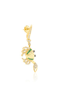 Crab 18K Yellow Gold Diamond, Tsavorite Single Earring green
